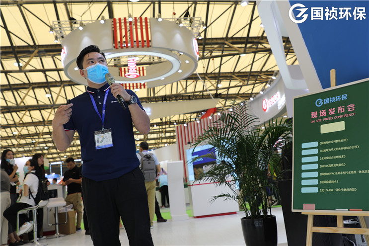 本次展會上,公司首次組織了路演發(fā)布會環(huán)節(jié),由專業(yè)工作人員為大家重點(diǎn)介紹了國禎環(huán)保以流域?yàn)閱卧乃h(huán)境綜合治理模式、水環(huán)境綜合治理模式、HiPOx高效臭氧氧化、極限除磷等核心解決方案、先進(jìn)技術(shù)以及國禎Biovac系列小型污水處理一體化設(shè)備、麥王S-IBR一體化生物反應(yīng)器等前沿產(chǎn)品,著力展示圍繞建設(shè)綠水青山采取的各項(xiàng)舉措,彰顯著屬于資深環(huán)保企業(yè)的社會責(zé)任與擔(dān)當(dāng)。路演發(fā)布會受到了廣大參會嘉賓的青睞和關(guān)注,前來咨詢、參觀及媒體參訪人員絡(luò)繹不絕,現(xiàn)場氣氛十分熱烈。