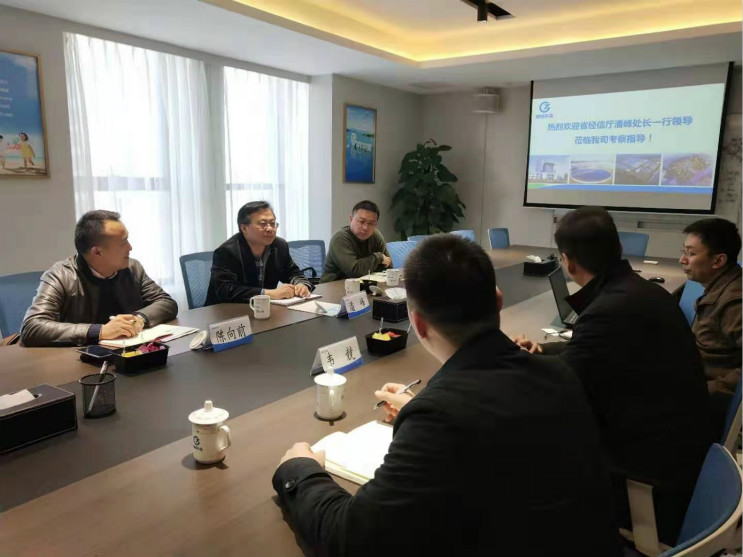 2019年3月15日下午,安徽省經信廳信息推進處處長潘峰一行蒞臨國禎環保考察指導,公司總經理石小峰、技術總監李濤、首席信息官韋競進行了熱情接待,并圍繞未來水務行業如何通過兩化融合實現智慧水務進行了座談。